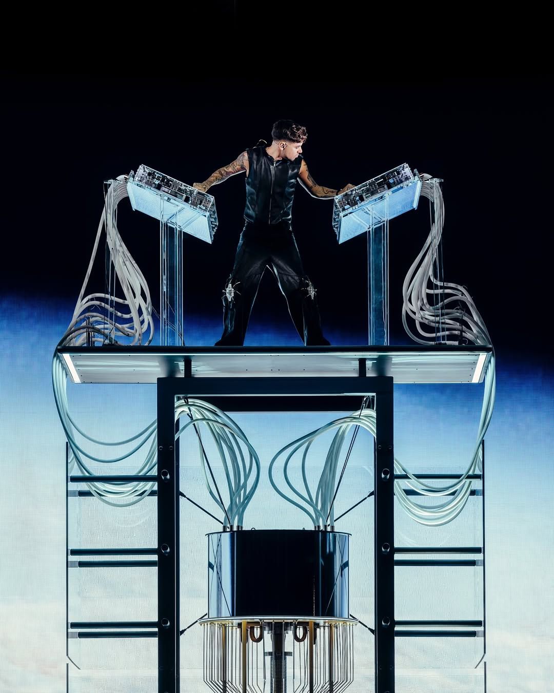 En lo que respecta al aspecto escenográfico y visual, el espectáculo se ha dividido en cuatro actos: ACT I GENESYS, ACT II HUMANA, ACT III THE END OF GENESYS y ACT IV QUANTUM. Todo ello acompañado de unos visuales de la mano del viejo conocido Alessio Di vechi, incluidos dos robots colocados a los dos lados del artista italiano que tocan en directo dos contrabajos con una precisión espectacular. Todo ello crea una experiencia nunca antes vista.