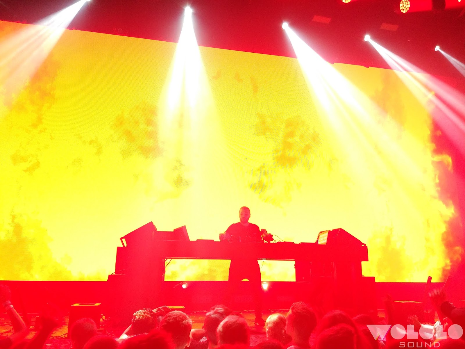 En mi caso, entré a Hï minutos antes del comienzo del set de Deadmau5, deseando ver la actuación del extrovertido artista. Una actuación que a mi personalmente me defraudó un poco, ya que fue íntegramente compuesta por sonidos techno, donde apenas se pudieron escuchar las acapellas de ‘The Longest Road’ y ‘Ghosts N Stuff’ sobre los contundentes bajos. Hora y media sin rastro de la música que suele pinchar Joel en otras fiestas, como las que pude disfrutar en FIB o Tomorrowland semanas atrás, donde el ratón pinchó media hora de techo y la hora restante de su repertorio habitual.