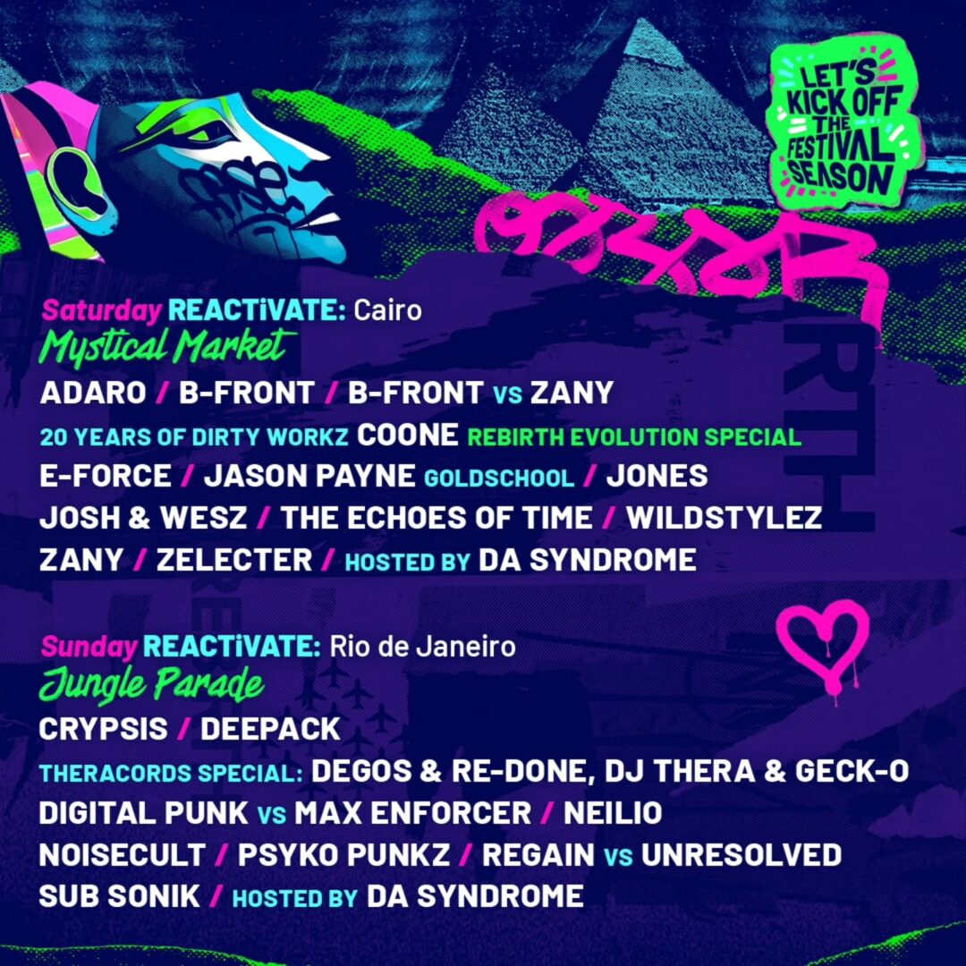 Es una evidencia que los clásicos están más de moda que nunca en esta escena. Esta tendencia se puede observar también en el cartel de REBiRTH Festival 2026, que cuenta con un escenario dedicado tanto el sábado como el domingo: el REACTiVATE. En él, se darán cita nombres como Wildstylez, Adaro, B-Front, E-Force o Crypsis, entre muchos otros.