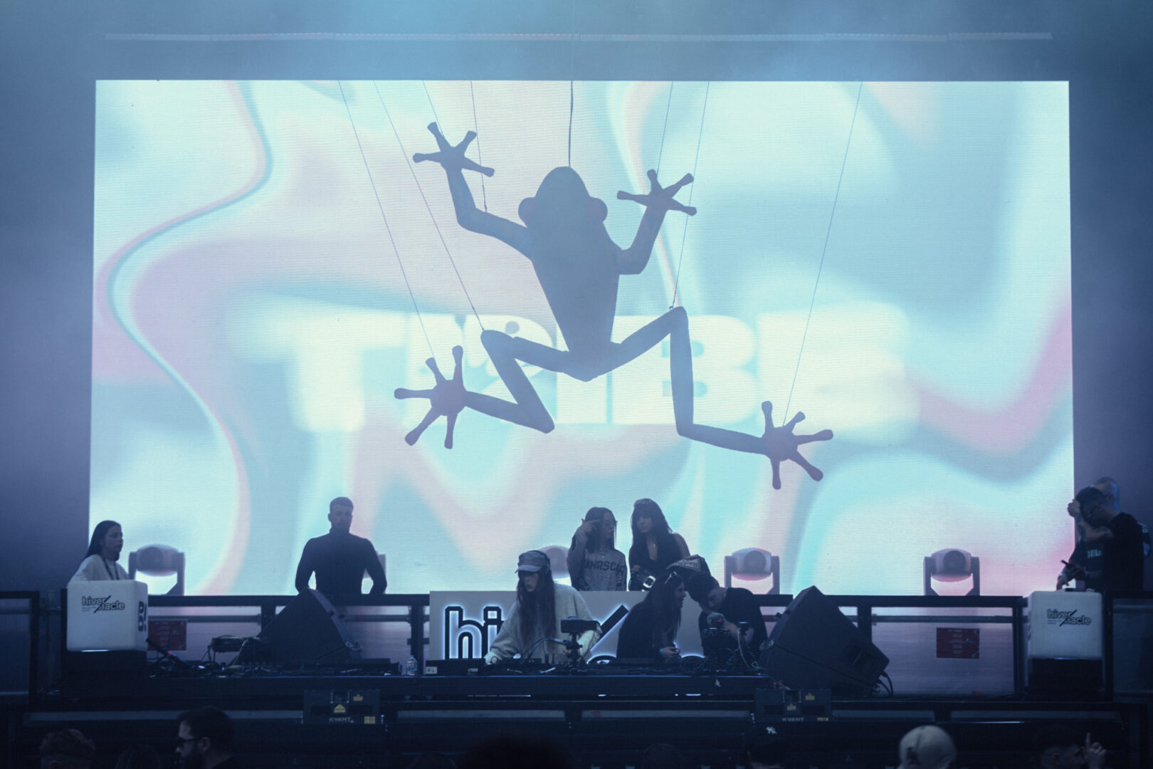 Las visuales, inspiradas en esa idea de tribu, naturaleza y estética selvática, acompañaron durante todo el evento, pero alcanzaron su máximo sentido en el cierre. Colores, animales, elementos trippy… y un detalle especialmente interesante: la inclusión de una cámara en directo del propio Funk Tribu, superpuesta sobre los visuales, creando una sensación muy inmersiva.