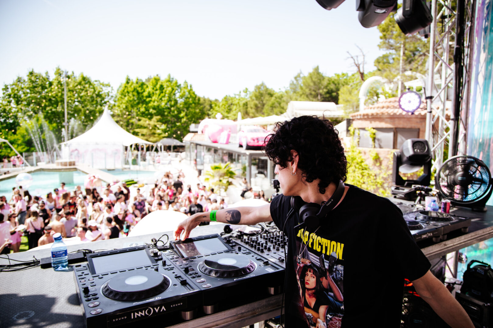El evento empezó a las 11 de la mañana y no paró hasta las 23h: 12 horas de música sin descanso. El día acompañó totalmente, con sol durante toda la jornada. La piscina fue uno de los puntos clave del recinto, y muchos aprovecharon para sacar el bañador y darse un baño. Para quienes preferían no mojarse, también había una zona con mesas y sillas donde descansar un poco y refrescarse.