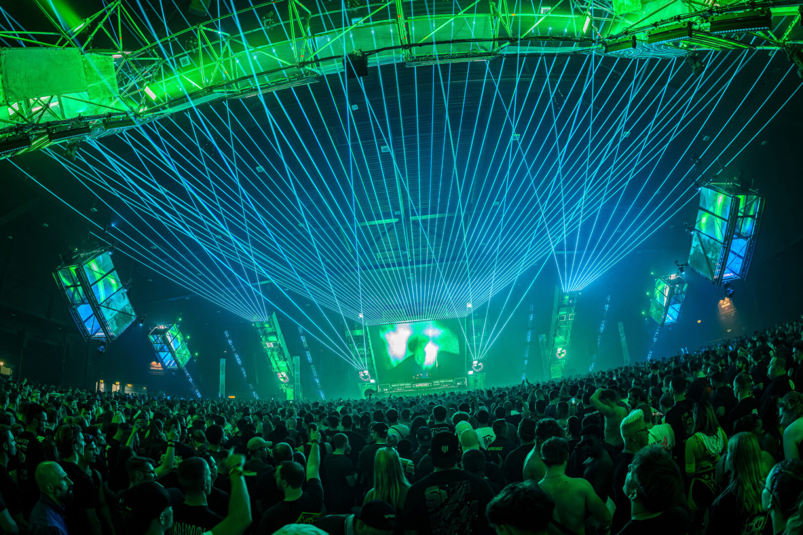 En cuanto al recinto, era mi primera vez en el Brabanthallen, en ‘s-Hertogenbosch. Seguro que muchos de los que me leéis ya habéis estado allí para ediciones anteriores de Supremacy o para Masters of Hardcore, los dos eventos indoor estrella de Art of Dance. Para quien no haya estado, le resumo fácilmente el venue: como IFEMA, pero en pequeño. Naves industriales interconectadas que hacían que todo el recinto fuese indoor: desde la atracción de feria hasta los lockers, desde las barras hasta los baños. En Supremacy, como viene siendo habitual, solo había un stage abierto, pero la zona tiene potencial para mucho más (como vemos en Masters of Hardcore).