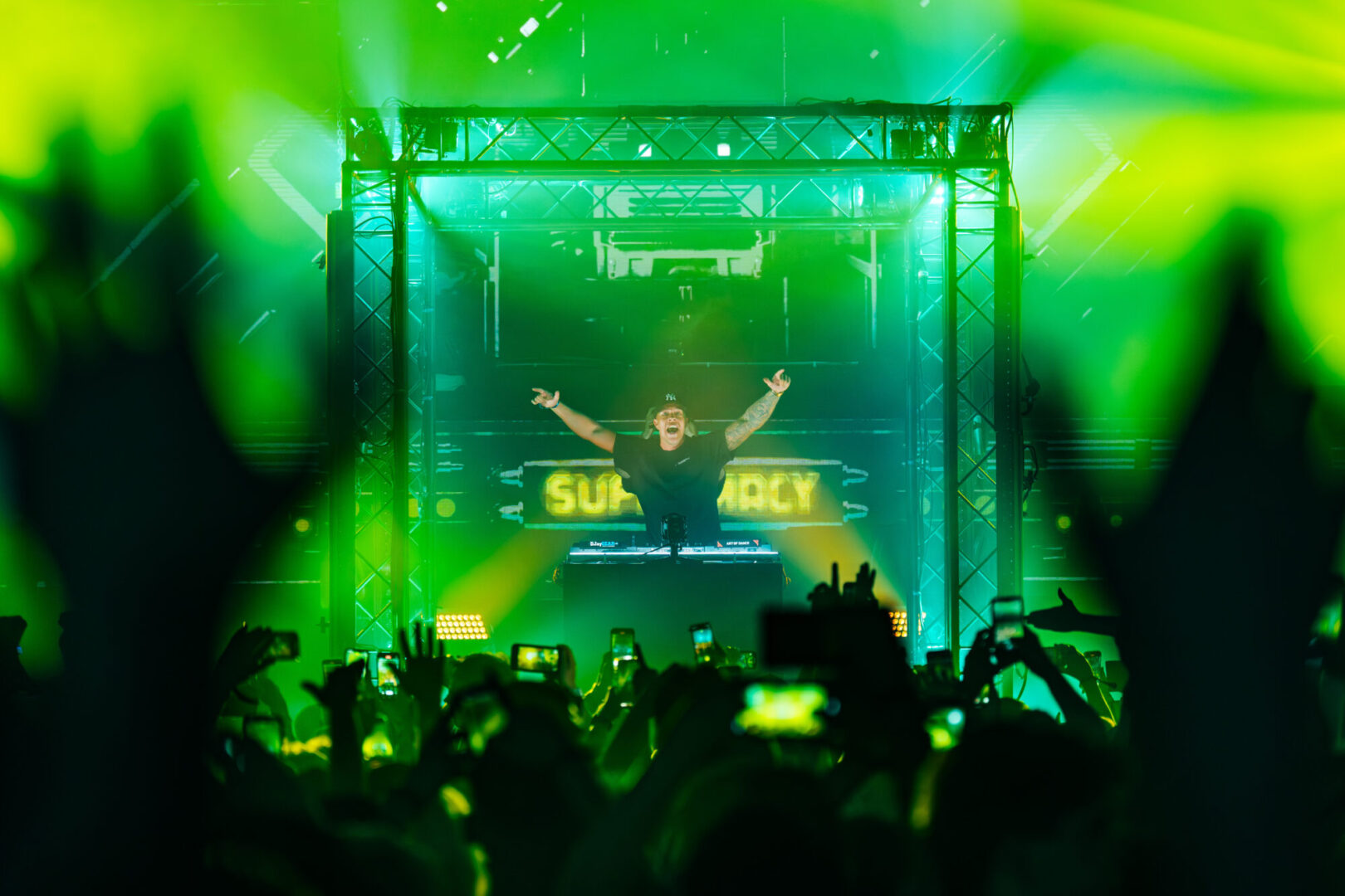 Hablando de la producción, a mí Supremacy me tiene completamente ganado. Habiendo estado en muchos festivales en estos últimos años, las dos ediciones de Supremacy que he visitado me han dejado con los ojos abiertos. Un gran juego de láseres, una estructura en medio de la pista que permitía aumentar la inmersión hasta para los asistentes al VIP y una pantalla que ocupaba la mayoría del frontal del escenario eran los grandes protagonistas. Además, todo esto sumado al gran trabajo de la gran parte de los artistas con sus liveacts, hacían que la totalidad del potencial del recinto quedase exprimido.
