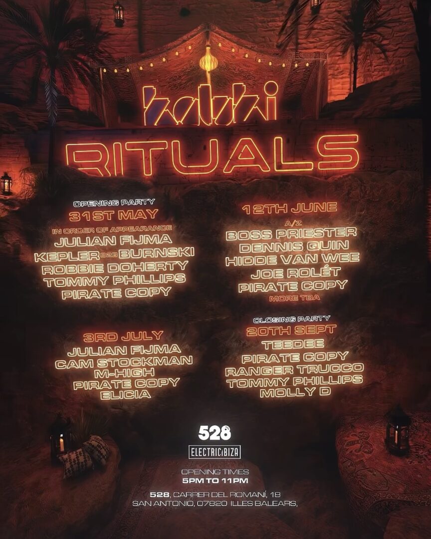 Kaluki es un colectivo británico de música electrónica y sello referente en la escena tech local house con más de dos décadas de recorrido promoviendo talentos emergentes en locales y festivales de Reino Unido y Europa. Su concepto Rituals mezcla sesiones al aire libre con atmósferas que van desde el atardecer hasta bien entrada la noche haciendo una progresión energética, y se llevará a cabo los días 31 de mayo, 12 de junio, 3 de julio y 20 de septiembre.