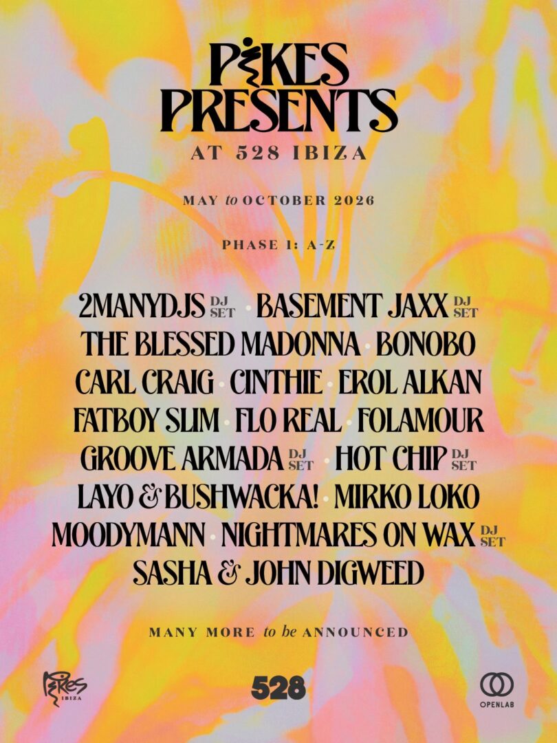 El fichaje de Pikes Presents fue una de las sorpresas y revelaciones del verano pasado, y en esta campaña adquiere aún más protagonismo con un calendario de 20 semanas (sumadas a las 4 fechas extra del 12 de agosto, 5, 12 y 26 de septiembre) que dará comienzo el 26 de mayo y cerrará sus puertas el 6 de octubre con la libertad musical como única premisa para los artistas invitados cada martes.