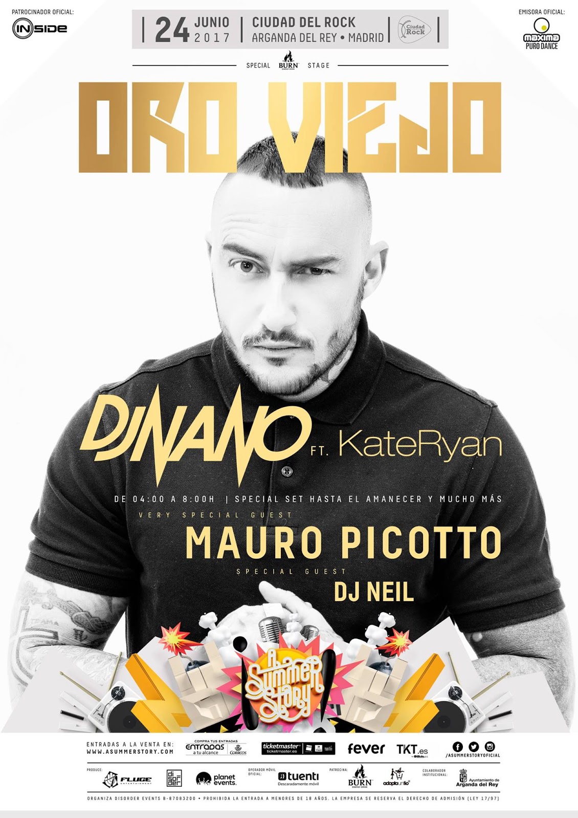 Y por otro lado tenemos Oro Viejo. Un escenario que va de la mano de A Summer Story desde su primera edición. Un movimiento en conmemoración a la música dance con la cual mucho de los asistentes a este espectáculo han crecido. Una vuelta a la década de los 90 y en esta ocasión con unos invitados de lujo. Por supuesto, contaremos con la presencia de su creador DJ Nano, unos de los artistas más consolidados de nuestro país, en las 8 horas de duración del Oro Viejo de este año tendremos un set de 4 horas de su fundador y estarán a su lado la mítica cantante belga Kate Ryan, autora de temas como ‘Désenchatée’, ‘Voyage Voyage’ o ‘Elle Elle L A’ entre otros muchos más. Otro invitado es el veterano productor y DJ italiano Mauro Picotto, un artista destacado sobre todo en el techno y en el trance, especialmente conocido por sus temas ‘Komodo’, ‘Iguana’ y ‘Proximus’. Y para acabar tenemos a otro artista nacional, Dj Neil a quien posiblemente lo conozcáis si escucháis la emisora Loca FM
