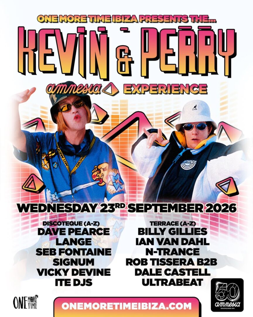 Los protagonistas ficticios de esta historia parodian a dos adolescentes obsesionados con la música electrónica, las fiestas y las mujeres, con una explosión de popularidad tras el estreno de la película Kevin & Perry Go Large, lanzada en el año 2000 y ambientada en Ibiza, en la que ambos viajan a la isla soñando con convertirse en DJ’s. El 23 de septiembre viajaremos al pasado en una de las noches con un ambiente más desenfadado del verano.