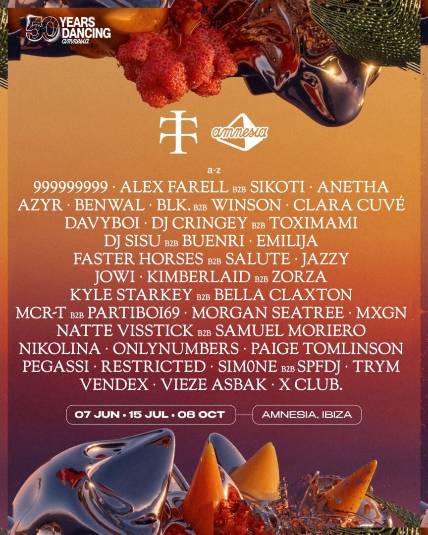 Tras una temporada de resiliencia muy bien sobrellevada y en el año de su 50 aniversario, Amnesia Ibiza vuelve a la carga con fuerza, nuevas ideas, muchas novedades y dispuesta a demostrar una vez más lo que todo el mundo sabe: que entre sus paredes se percibe legado, diferenciación, orgullo y talento con la música como actor principal. A continuación podrás empaparte de sus residencias y eventos especiales programados para el intenso verano de 2026.