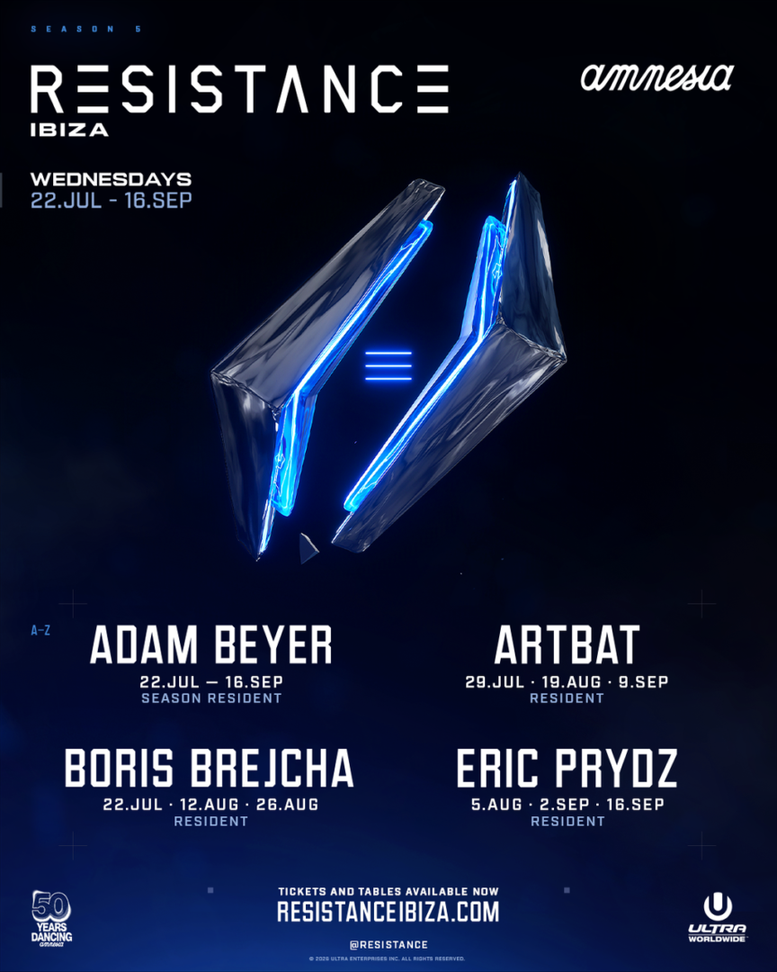 La segunda temporada de RESISTANCE se llevará a cabo los miércoles del 22 de julio al 16 de septiembre desglosada en 4 fases: Adam Beyer será el residente en las 9 fechas y Boris Brejcha, ARTBAT y Eric Prydz se turnarán con el mismo rol pero 3 acontecimientos cada uno para formar el lineup más ambicioso hasta la fecha de la marca underground de Ultra Worldwide.