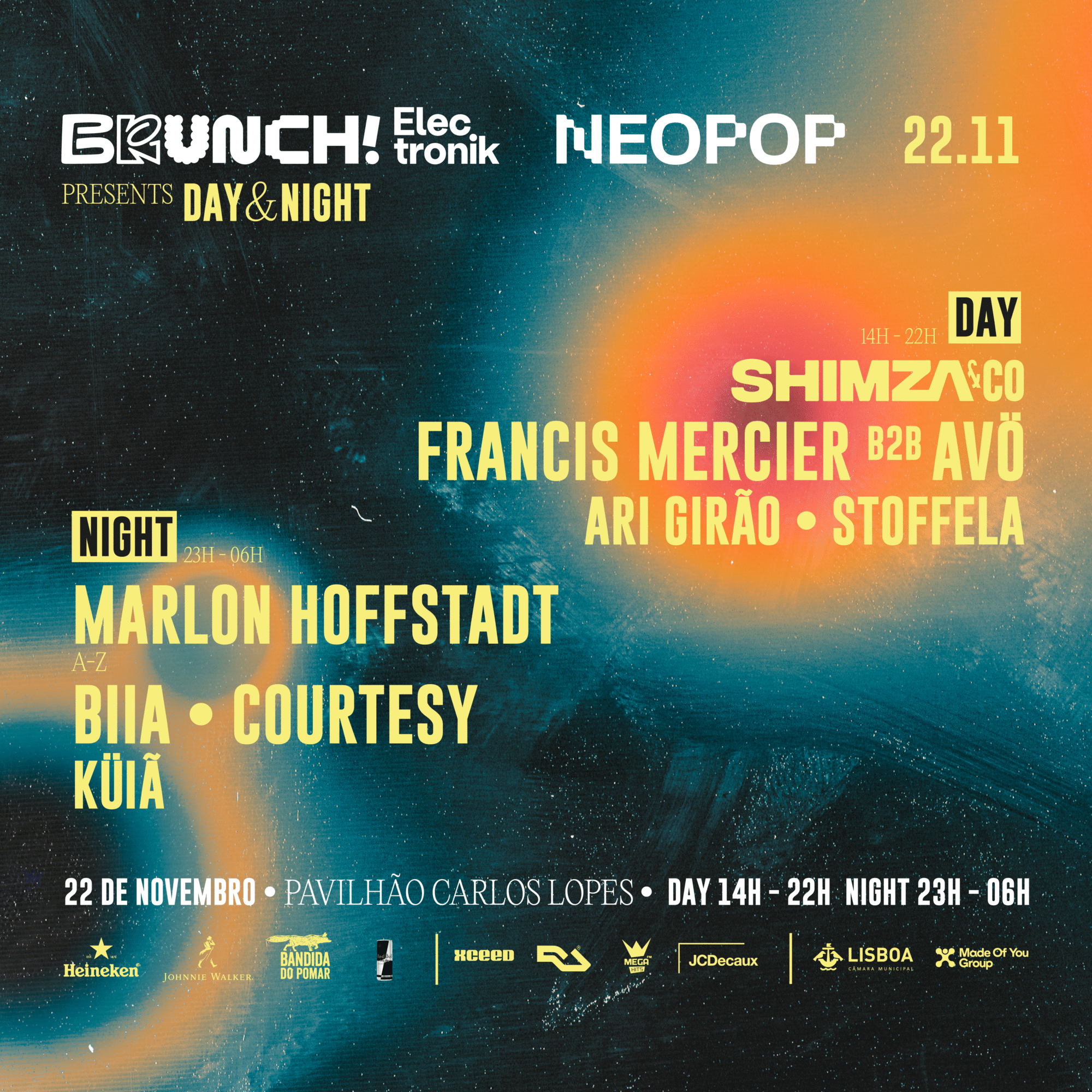Brunch Electronik y NEOPOP Festival unen fuerzas por primera vez para crear una experiencia sin precedentes en Lisboa: un evento Day & Night que celebra la música electrónica en todas sus vertientes, conectando generaciones, géneros y sensibilidades. Una jornada diseñada para vivir la cultura electrónica en toda su amplitud, del sol al amanecer, con un cartel que combina referentes internacionales y talento local en un entorno donde la energía, la comunidad y el espíritu de club se fusionan en una misma historia.