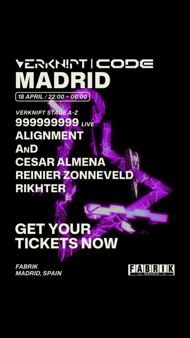 La fecha elegida es el 18 de abril y el lugar, cómo no, FABRIK. Pero ojo, porque esta vez la película cambia bastante. Si en su primera unión se centraron en AREA 19, ahora el asunto escala a lo grande: Main Room + Satélite. Traducido: más aforo, más impacto y más margen para que Verknipt despliegue todo lo que lleva tiempo demostrando fuera de España.