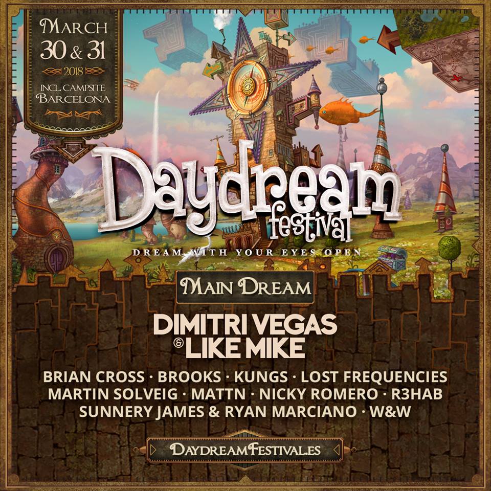 Tras las confirmaciones de Dimitri Vegas & Like Mike y W&W la primera edición en nuestro país del conocido internacionalmente Daydream Festival echó a rodar. Hace apenas unos minutos la organización ha confirmado, mediante su facebook oficial, a un total de 18 nuevos artistas que se repartirán en dos de los cinco escenarios que se dispondrán en El Bosque Mágico de la Roca del Vallés (Barcelona) los días 30 y 31 de marzo de 2018.