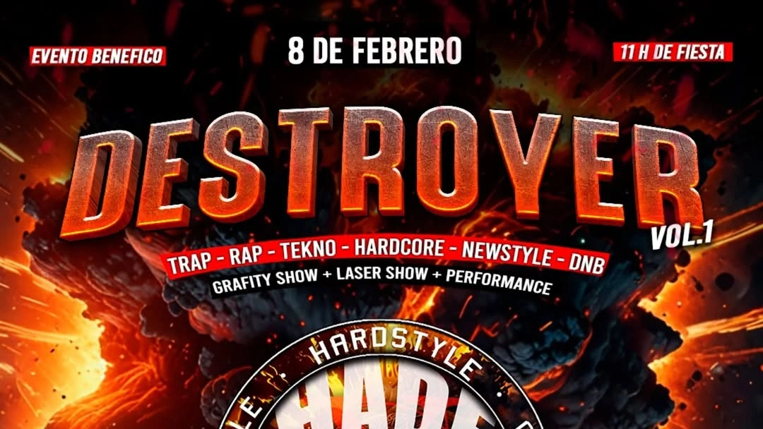 Destroyer Festival se celebrará el próximo 8 de febrero en Tempo VIP Club, sala localizada en Almerimar, provincia de Almería. Cuenta con un cartel de lo más variado que cubrirá desde el rap hasta el hardcore, pasando por el hardstyle o el raw. Artistas como Yung Sarria, Ardo440, los residentes de 150 by Fabrik Yeyo y Reborn, Toni Massama, Ender o Lemur serán algunos de los invitados en un evento que también contará con un show de graffiti y una batalla de gallos.