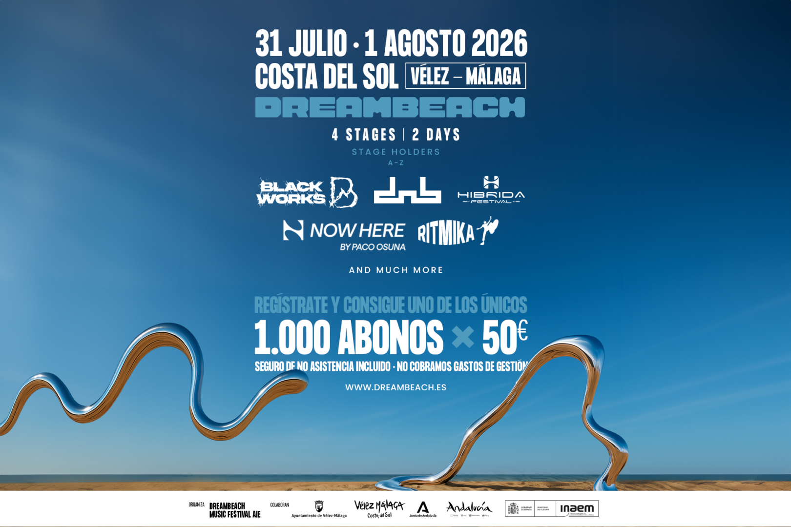Dreambeach inicia una nueva etapa en su historia y da el salto a la Costa del Sol para celebrar su 12ª edición. El festival, uno de los grandes referentes de la música electrónica en el sur de Europa, se celebrará por primera vez en Vélez-Málaga los días viernes 31 de julio y sábado 1 de agosto de 2026, estrenando además un nuevo formato de dos jornadas y una nueva denominación: Dreambeach Costa del Sol