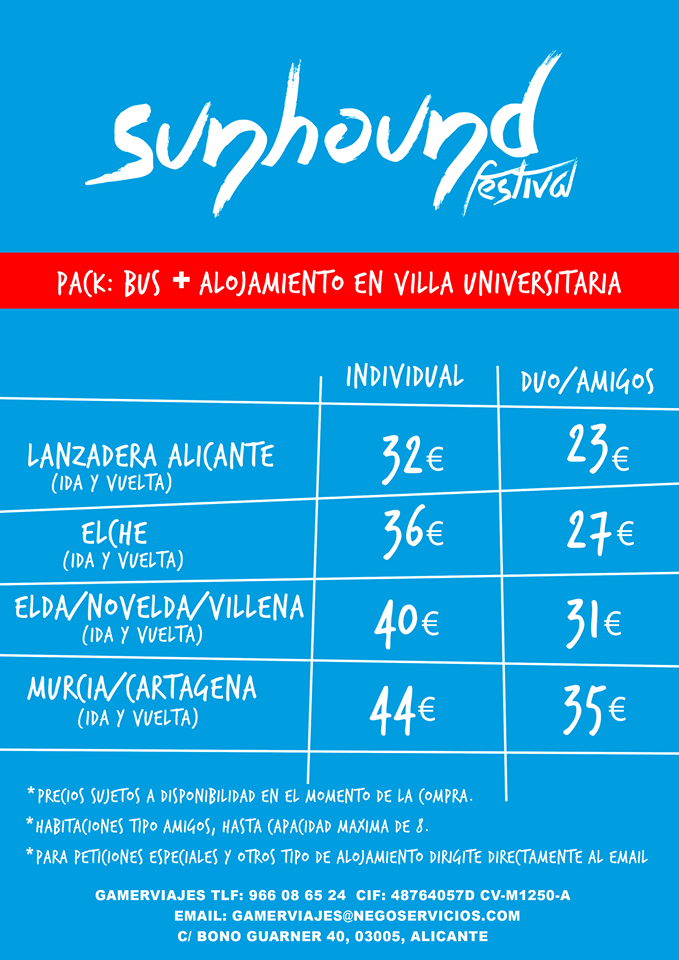 Si eres de fuera de la ciudad y quieres usar el transporte y alojamiento que nos proporciona el festival desde las diferentes localidades de la provincia, aquí te dejamos una tabla de precios.