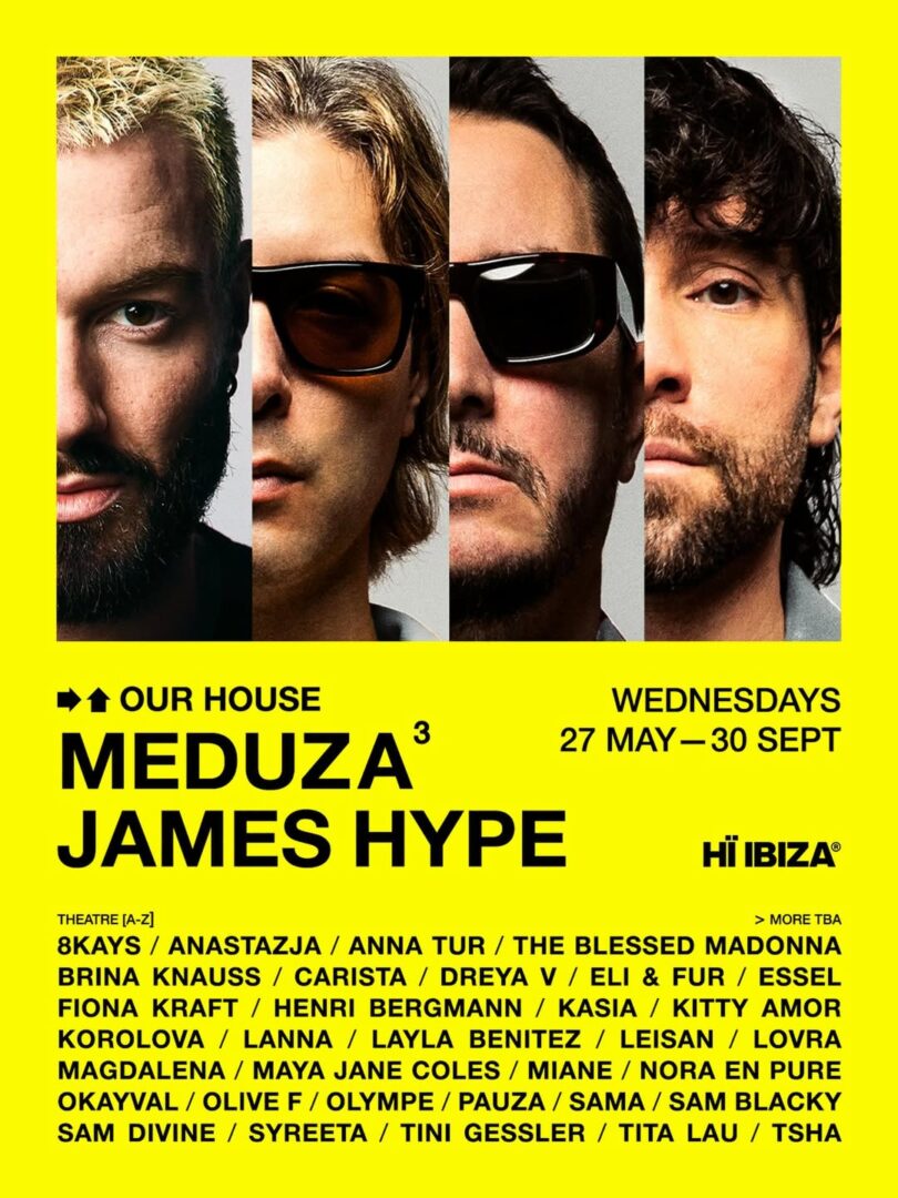 MEDUZA y James Hype regresan con OUR HOUSE por quinto año consecutivo y se desplazan a los miércoles, concretamente del 27 de mayo al 30 de septiembre. MEDUZA³ y SYNC —las propuestas de ambos artistas— llegan renovados combinando instrumentación en directo, tecnología avanzada y visuales sincronizadas que transforman la pista en un espacio multisensorial. El apretón de manos confirma la solidez de la relación creativa y será propulsado por OFFWEEK, que celebra su décimo aniversario con una primera aventura lejos de la ciudad condal y por SENSES, la reciente iniciativa de Jonas Blue.