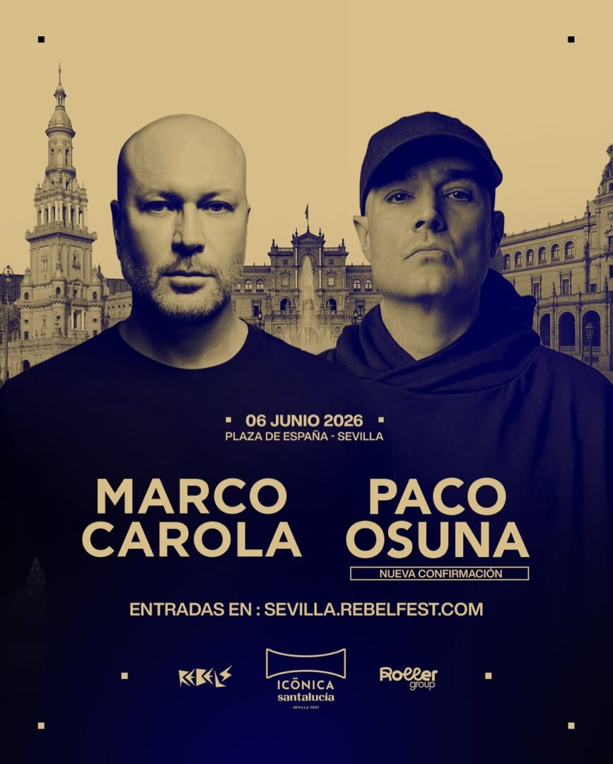 La electrónica empieza a tope con mucho musicón. Y es que dos viejos amigos se vuelven a juntar en el mejor escenario posible; Marco Carola y Paco Osuna comandan la primera de las dos fechas donde Icónica Santalucía Sevilla Fest colabora con Rebels para traer el mejor tech house del mundo de la mano de estas dos estrellas. Si ya verles por separado es de por sí un lujazo, imagina verles en un mismo día. Con un cartel a punto de completarse, estas dos figuras ya son suficiente reclamo para que te bajes a Sevilla a vivir un fiestón como ningún otro.