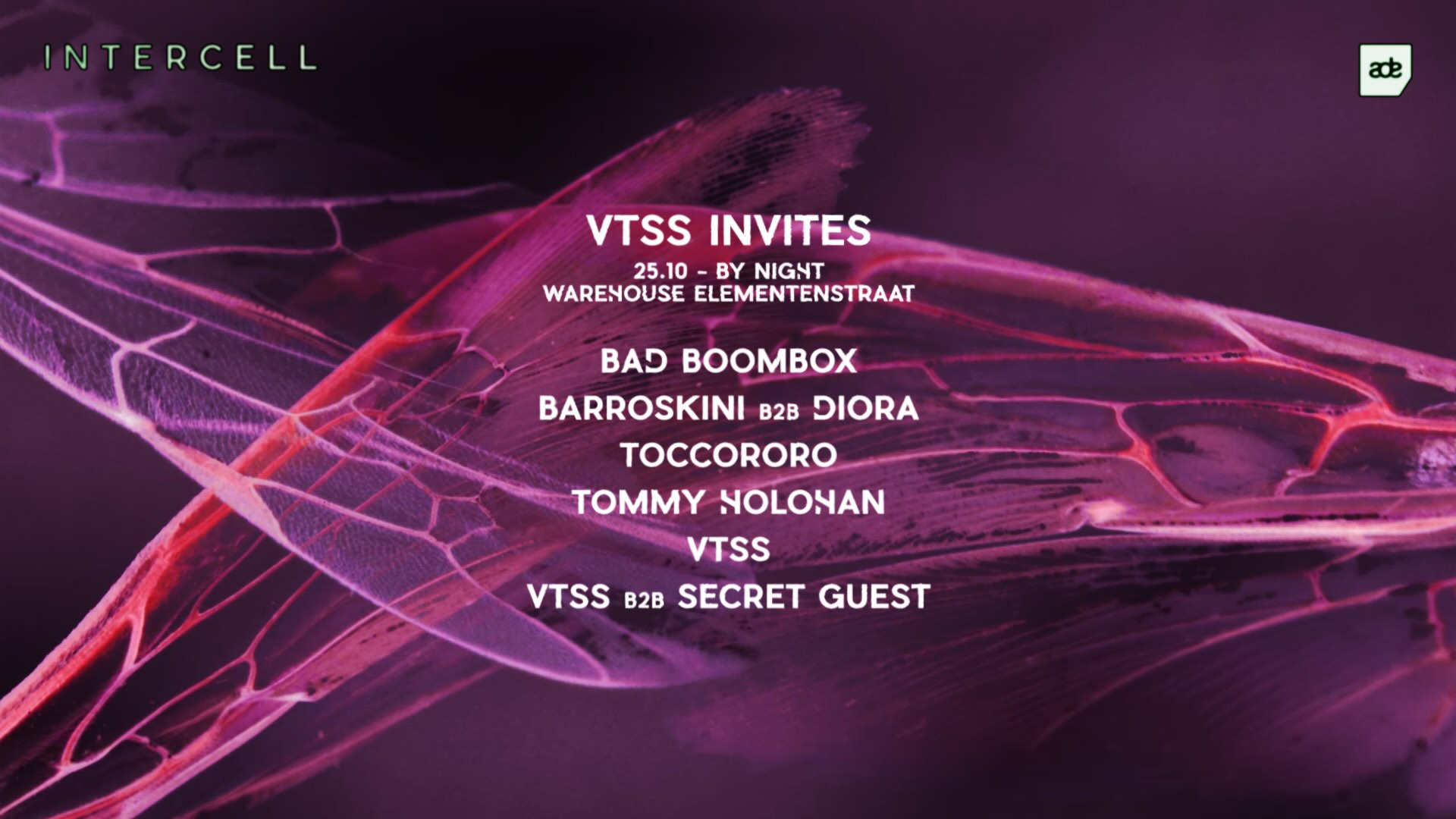 VTSS toma el control de la noche con una programación que refleja su visión del techno, presentando una alineación de artistas que aportan intensidad y diversidad: Bad Boombox, BARROSKINI B2B DIORA, TOCCORORO, Tommy Holohan y VTSS B2B Secret Guest.