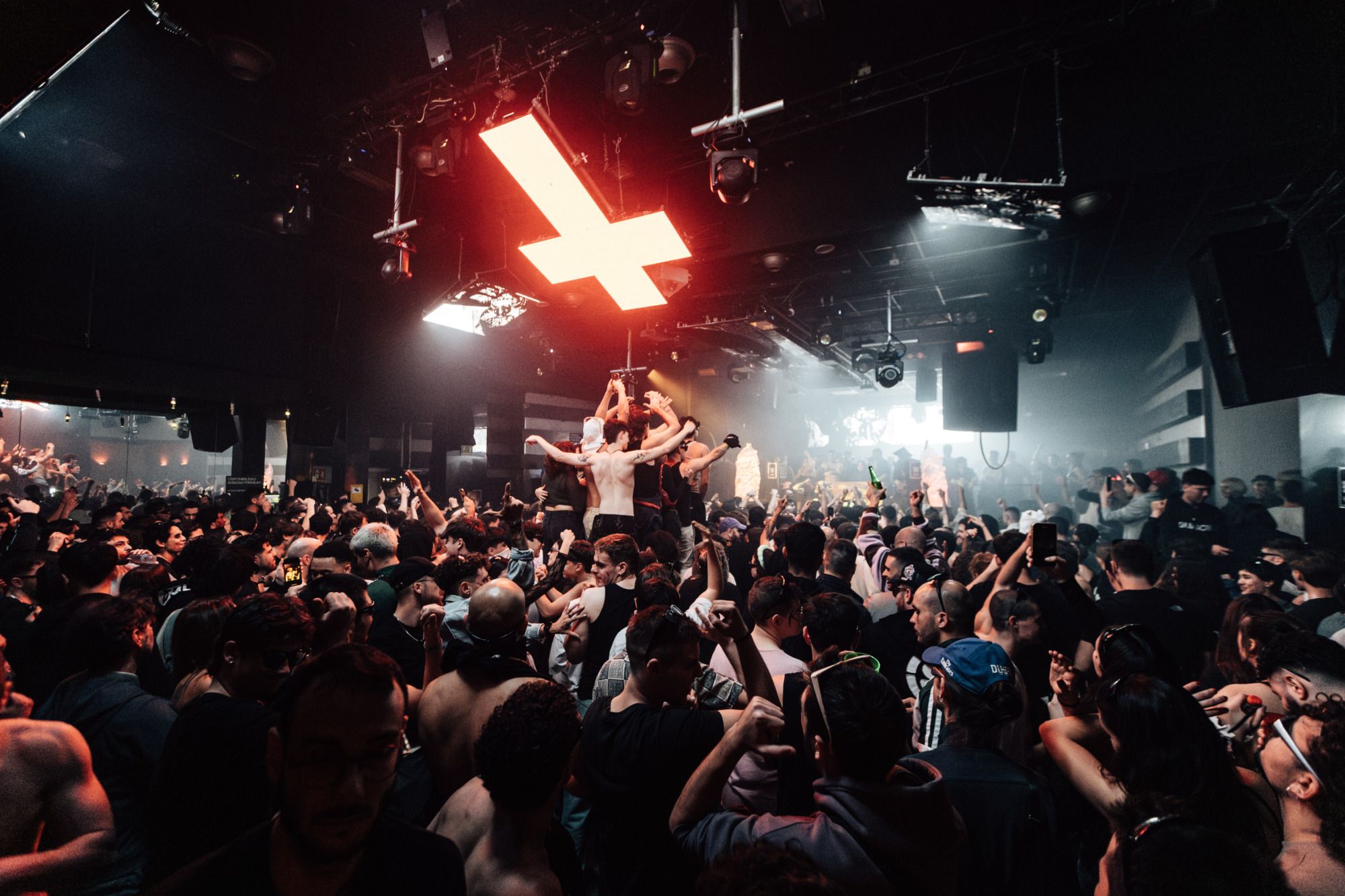 Mientras tanto, la sala principal explotaba en tonos de rojo, decoraciones infernales y actuaciones de performers colgando de un par de aros elevados y colocados sobre la cabina. En control de los mandos se encontraba el residente Finalversion3, otro de los veteranos que mayor huella han dejado en la escena local en años recientes, y sin lugar a dudas un experto del techno en toda la extensión de la palabra.